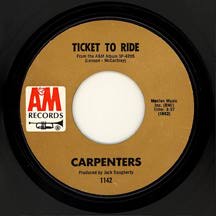 Their version of The Beatles’ “Ticket To Ride” peaked at number 54 on the Billboard Hot 100 during a 12 week stay, and reached number 19 on the Adult Contemporary chart. At the time of its initial release in 1969 under the album title Offering, (with a completely different cover photo) it was a commercial failure and the record label only released this cover as a single. After the Carpenters’ subsequent breakthrough, however, the album was reissued internationally under the name Ticket to Ride and sold better – but not much.