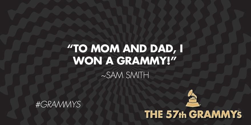 11:12pm – Sam Smith wins Record of the Year. “Thank you to the man who broke my heart…who the record was about…because you won me 4 Grammys!”