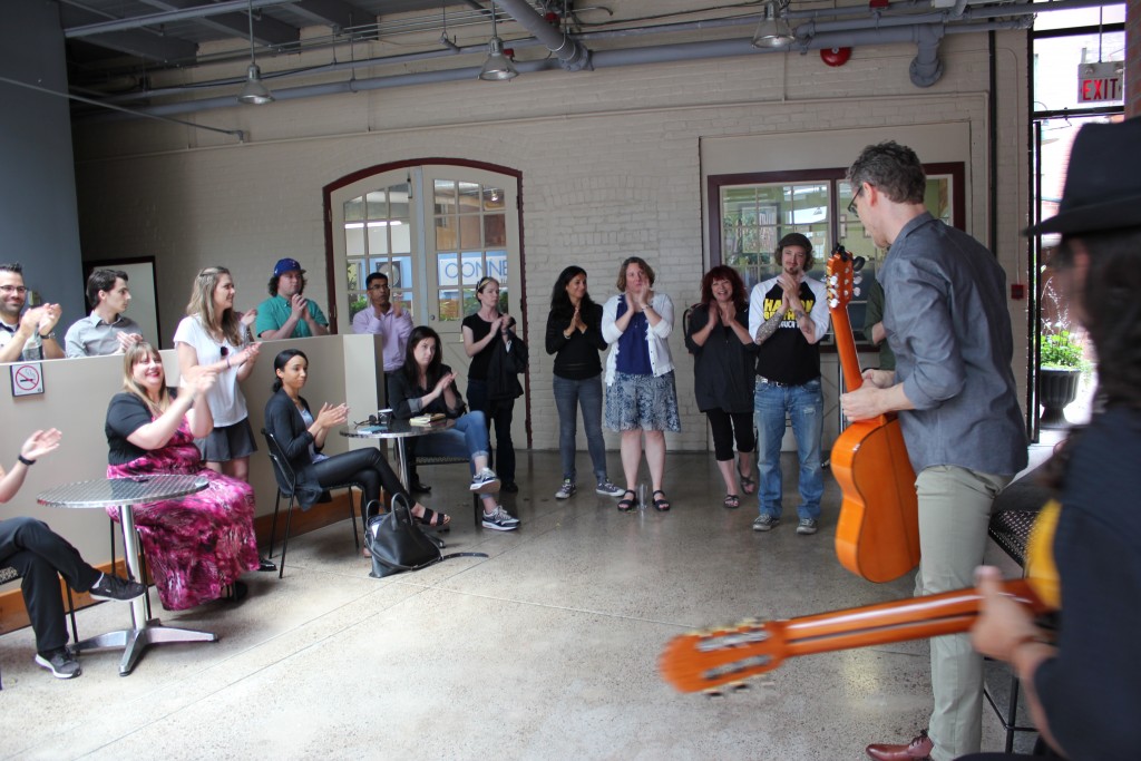 Canadian nuevo flamenco guitarist Jesse Cook performed a rare unplugged set during a visit to the Music Canada office Tuesday. Cook’s new album One World displays the JUNO-award winning and Platinum-certified artist further connecting styles and themes of music from across the globe centered around his unique style of guitar playing. One World also finds Cook experimenting with new electronic and metallic sounds, which he credits his two young children as influences for the new direction. Fans of all ages and genres should catch Cook’s brilliant guitar playing when he tours across Canada this fall!