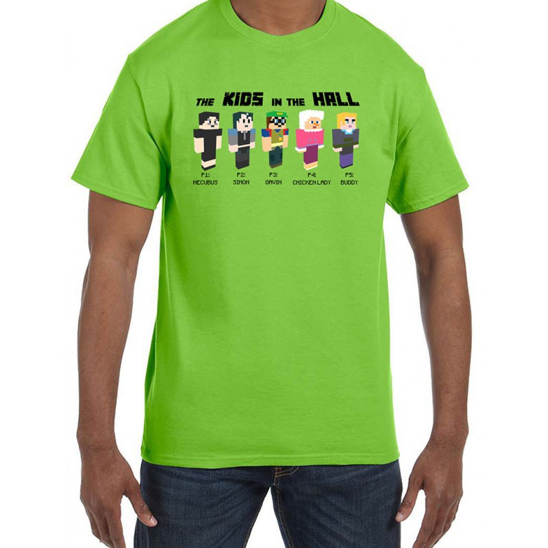 Music This T-shirt from the Kids in the Hall’s recent tour is awesome Jul 7, 2015 FacebookTwitterPinterestWhatsAppLinkedinReddItEmailPrint T-shirt from the Kids in the Hall’s recent tour that shows 5 KITH characters as Minecraft avatars.