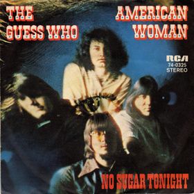 American Woman by Canadian rock band The Guess Who, was first released in January 1970 on the album of the same name and later in March as a single, which reached No. 1 on the Billboard Hot 100. Backed with “No Sugar Tonight,” Billboard ranked it as the No. 3 record of 1970.