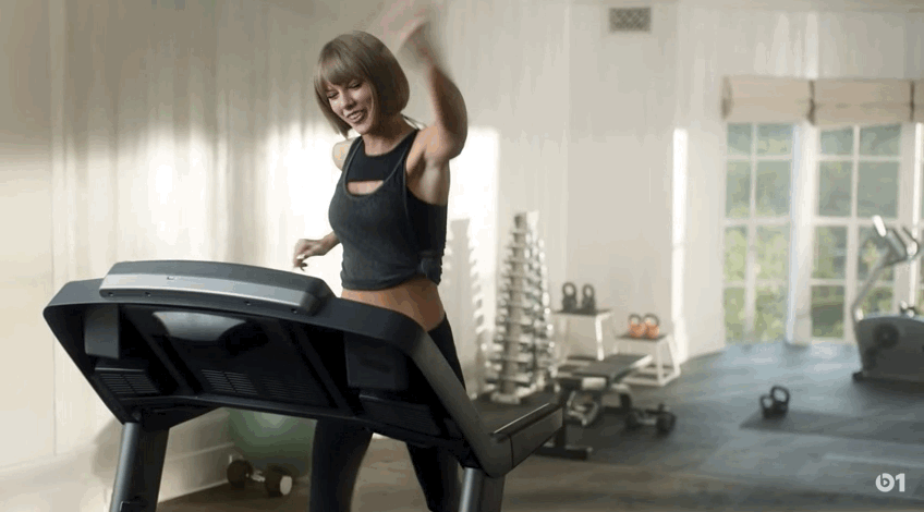 Earlier this month, Apple Music released this ad featuring Taylor Swift rapping along to Drake and Future’s “Jumpman”, and falling off the treadmill: