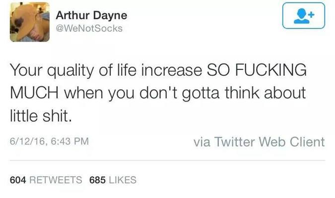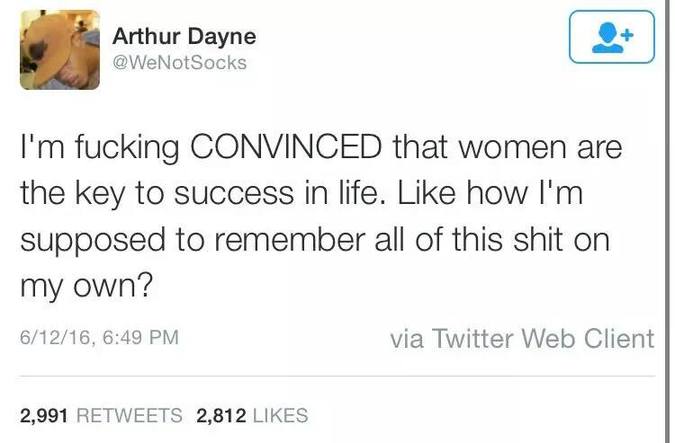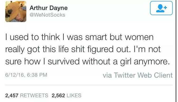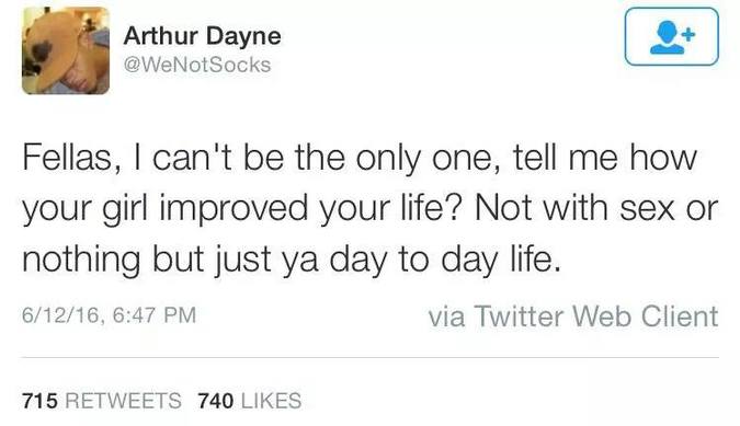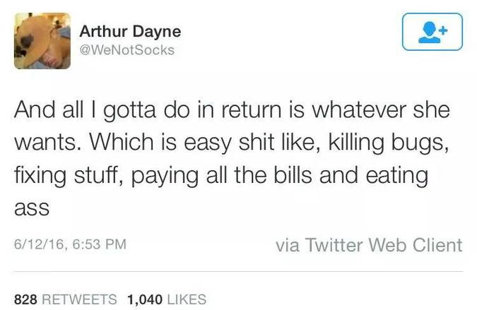 Twitter user Arthur Dayne recently moved in with his girlfriend.In a monstrous series of tweets, I think he’s figured out the secret to life’s success, and it’s women.
