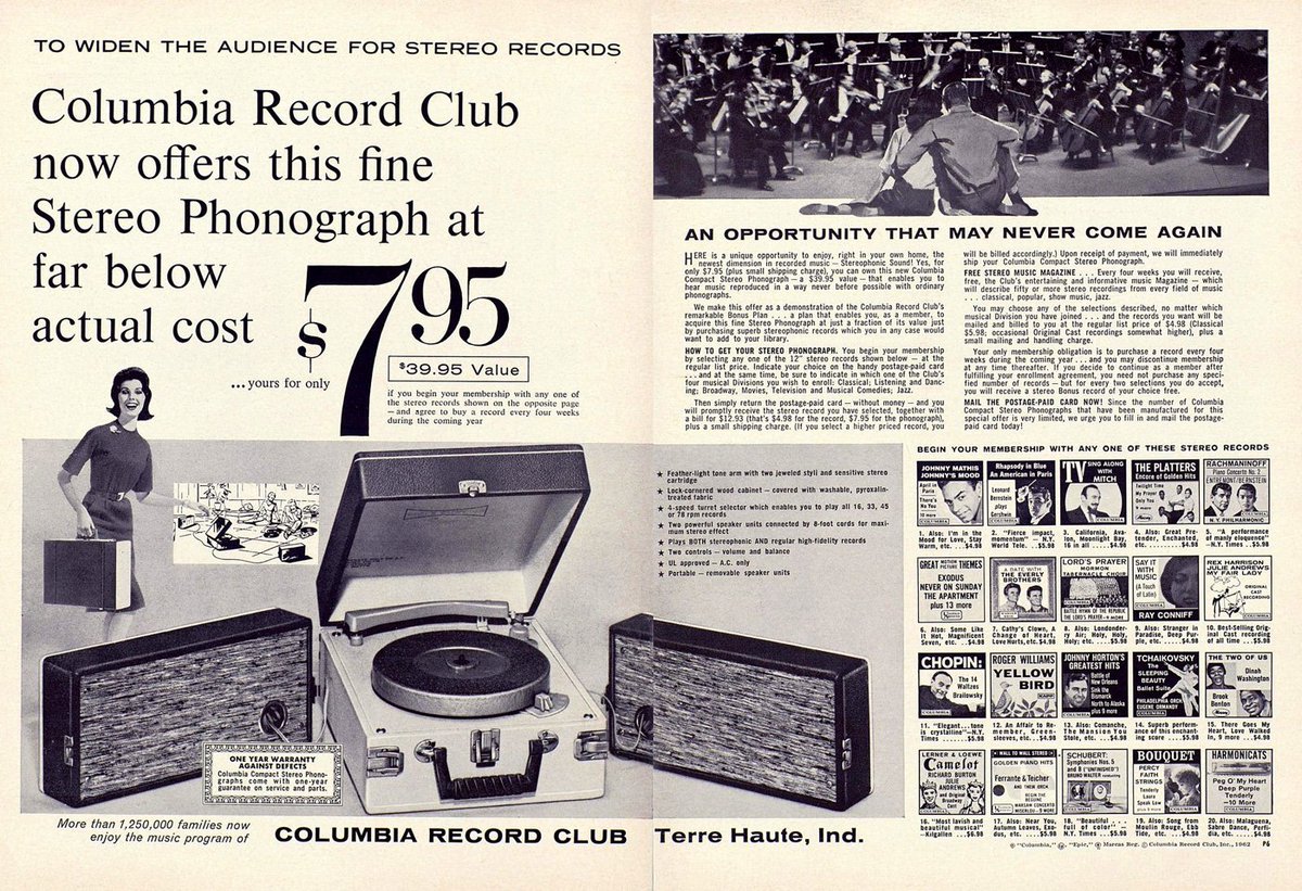 Music “This fine Stereo Phonograph at far below actual cost… yours for only $7.95” – Columbia Record Club ad, 1962 Jul 31, 2017 FacebookTwitterPinterestWhatsAppLinkedinReddItEmailPrint