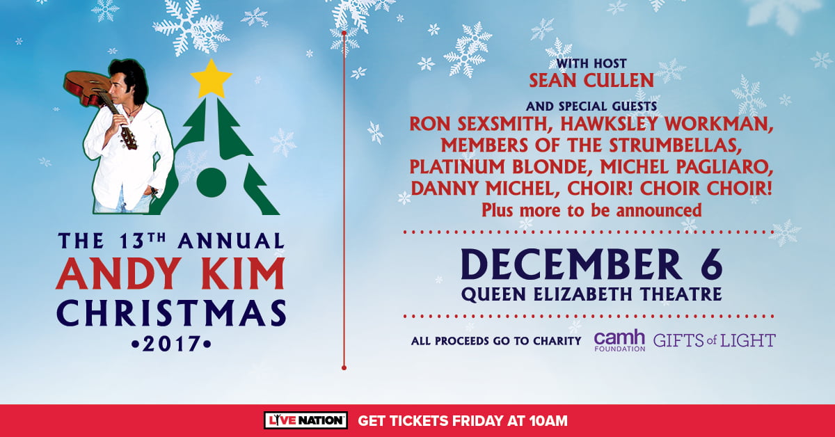The 13th Annual ANDY KIM CHRISTMAS will be held at the Queen Elizabeth Theatre on December 6th. Tickets go onsale this Wednesday at Noon.