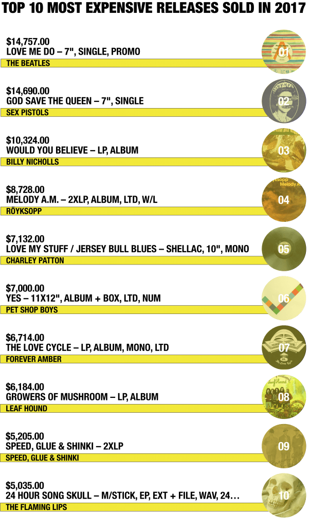 Music Used Vinyl Are Still Fetching Big Money From Collectors Feb 28, 2018 FacebookTwitterPinterestWhatsAppLinkedinReddItEmailPrint Used vinyl is still selling at astronomical prices as well. According to Discogs, here are the top 10 most expensive pieces sold last year.