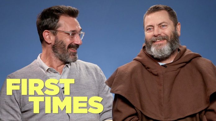 Music Jon Hamm And Nick Offerman Talk About Their First Times Jun 13, 2019 FacebookTwitterPinterestWhatsAppLinkedinReddItEmailPrint In honor of the release of Good Omens, Jon Hamm (Mad Men, Bridesmaids) and Nick Offerman (Parks and Recreation, Making It) tell us all about their firsts.