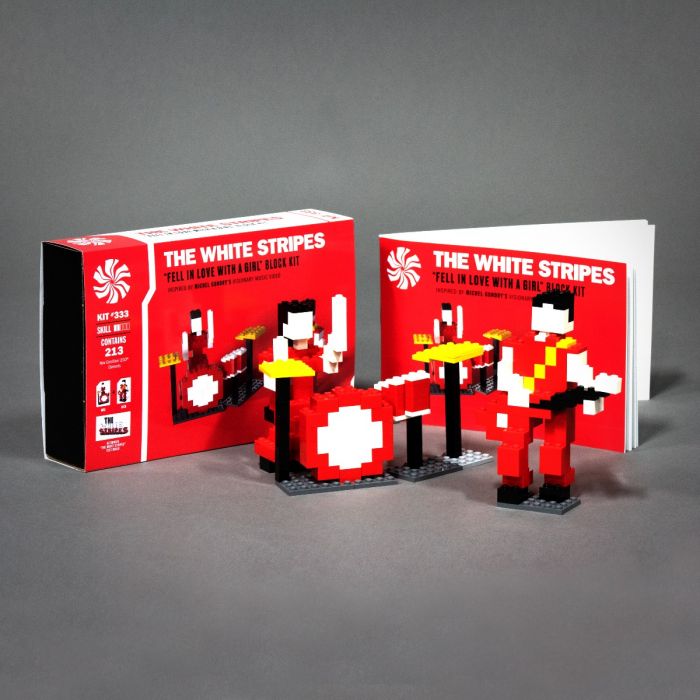 Jack White’s Third Man Records does it again. Here’s The White Stripes “Fell in Love with a Girl” block kit, inspired by Michel Gondry’s visionary music video. You can build three designs with one kit and includes full color printed building instructions. Buy it here fast before it sells out.