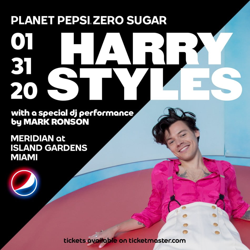 Today, Pepsi announced chart-topping international superstar Harry Styles is set to headline the brand’s annual Super Bowl weekend party. Harry, who is about to embark on his international Love on Tour, will take the Pepsi Zero Sugar stage for what is sure to be an epic genre-bending performance of his multi-platinum debut Sign of the Times and new global hits including Adore You and Watermelon Sugar from his critically-acclaimed second solo album, Fine Line. Also performing a special DJ set that evening is Academy, Grammy and Golden Globe-winning artist and producer Mark Ronson. Ronson released his fifth studio album Late Night Feelings in 2019 to rave reviews.