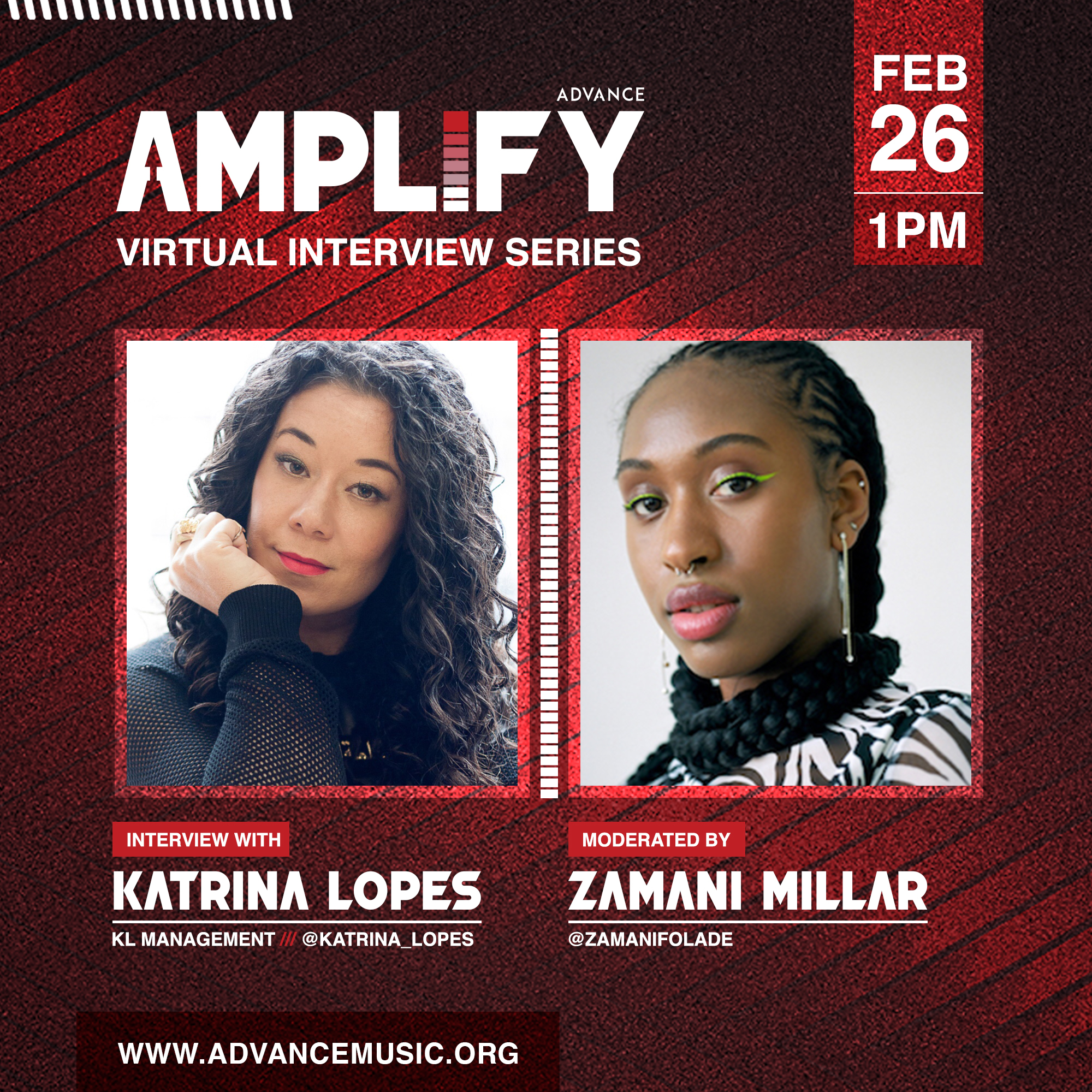 The monthly series, which will be available for streaming on the ADVANCE website, has launched with Katrina Lopes and Zamani Millar.