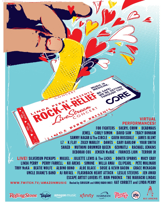 The current lineup for this two-day concert series hosted by DJ Kat Corbett of SiriusXM & KROQ will feature artists like Foo Fighters, Deadmau5, Perry Farrell, Miguel, Carly Simon w/ David Saw, Gavin Rossdale, Pete Yorn, James Blunt, Jewel, Tracy Bonham, Sheryl Crow, Sammy Hagar DJ Adam Bravin (of She Wants Revenge), SHAED, Macy Gray, Willa Ami, Juliette Lewis, Donita Sparks of L7 & Friends, Linda Perry, Pete Molinari, Kevin Bacon, Silversun Pickups and more. Perry and CORE are working with Amazon Music to stream the concert live on the Amazon Music mobile app, and through the Amazon Music Twitch channel at twitch.tv/amazonmusic. Rolling Stone and YouTube will also further the reach of this timeless event. “We are extremely overwhelmed by the level of support we are getting from these rebel artists who are generously donating their time and so grateful for the backing from the biggest players in the media space. Can’t wait to get the word out and provide much needed funding for CORE while entertaining and lifting the spirits of the nation.” says Perry.