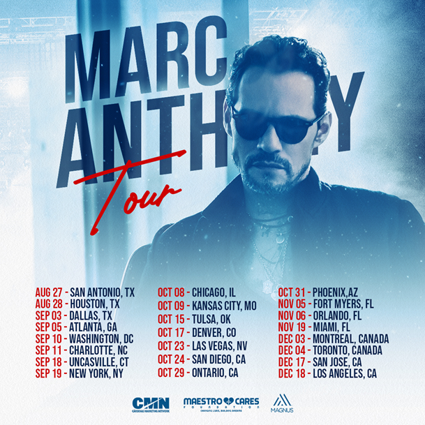 CMN and MAGNUS announced today Marc Anthony’s new U.S. Tour is set to start August 27, 2021 in San Antonio Texas. The “Marc Anthony Tour” will play in 23 cities and will mark his return to some of the most prestigious arenas in the country and also includes two shows in Canada.