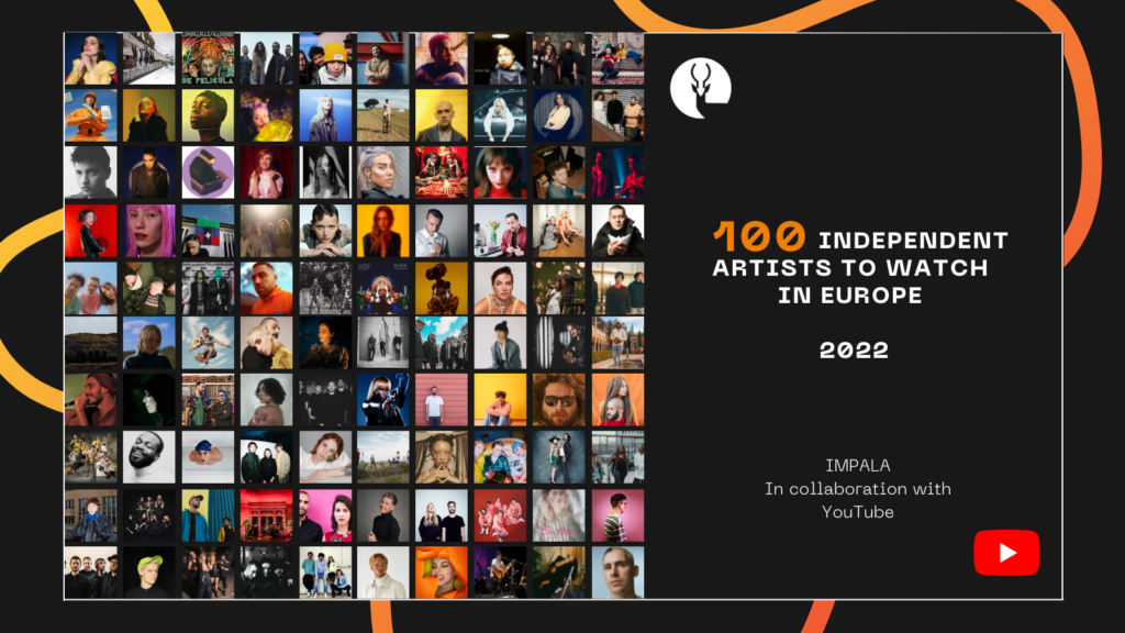 Dan Chalmers from YouTube added: “The independent sector is a key partner for YouTube and we are really excited about our collaboration with IMPALA on 100 Artists to Watch in Europe. YouTube gives creators and artists a platform to reach the world and enables them to get noticed across borders”.