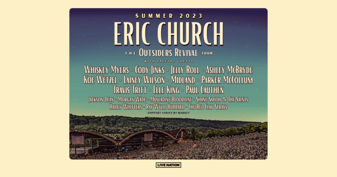 It’s a rite of passage for any music fan, seeing “The Chief” live in concert. Known for his marathon sets, the 2022 Billboard Music Awards’ Top Country Tour honoree Eric Church brings his critically acclaimed live show to new audiences in new ways this year, headlining outdoor venues throughout the summer with The Outsiders Revival Tour. Joining the man praised by POLLSTAR for “having already long established himself as one of the most successful touring country artists” across varying dates are Whiskey Myers, Cody Jinks, Jelly Roll, Ashley McBryde, Koe Wetzel, Lainey Wilson, Midland, Parker McCollum, Travis Tritt, Elle King and Paul Cauthen, plus Jackson Dean, Morgan Wade, Muscadine Bloodline, Shane Smith & The Saints, Hailey Whitters, Ray Wylie Hubbard and The Red Clay Strays.