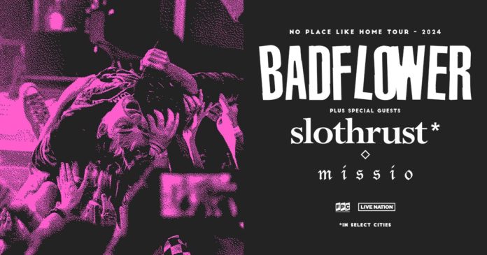 Today, Badflower announced the No Place Like Home Tour – 2024 across the U.S. Produced by Live Nation and FPC Live, the 29-date run kicks off on Tuesday, September 3 in Dallas, TX at the House of Blues, with stops in Houston, Fort Lauderdale, Atlanta, Boston, New York, Denver, Portland, Los Angeles, San Diego and more before wrapping up on Tuesday, October 22 at Ryman Auditorium in Nashville, TN. Special guests Missio will join on all dates and Slothrust will join on select shows.