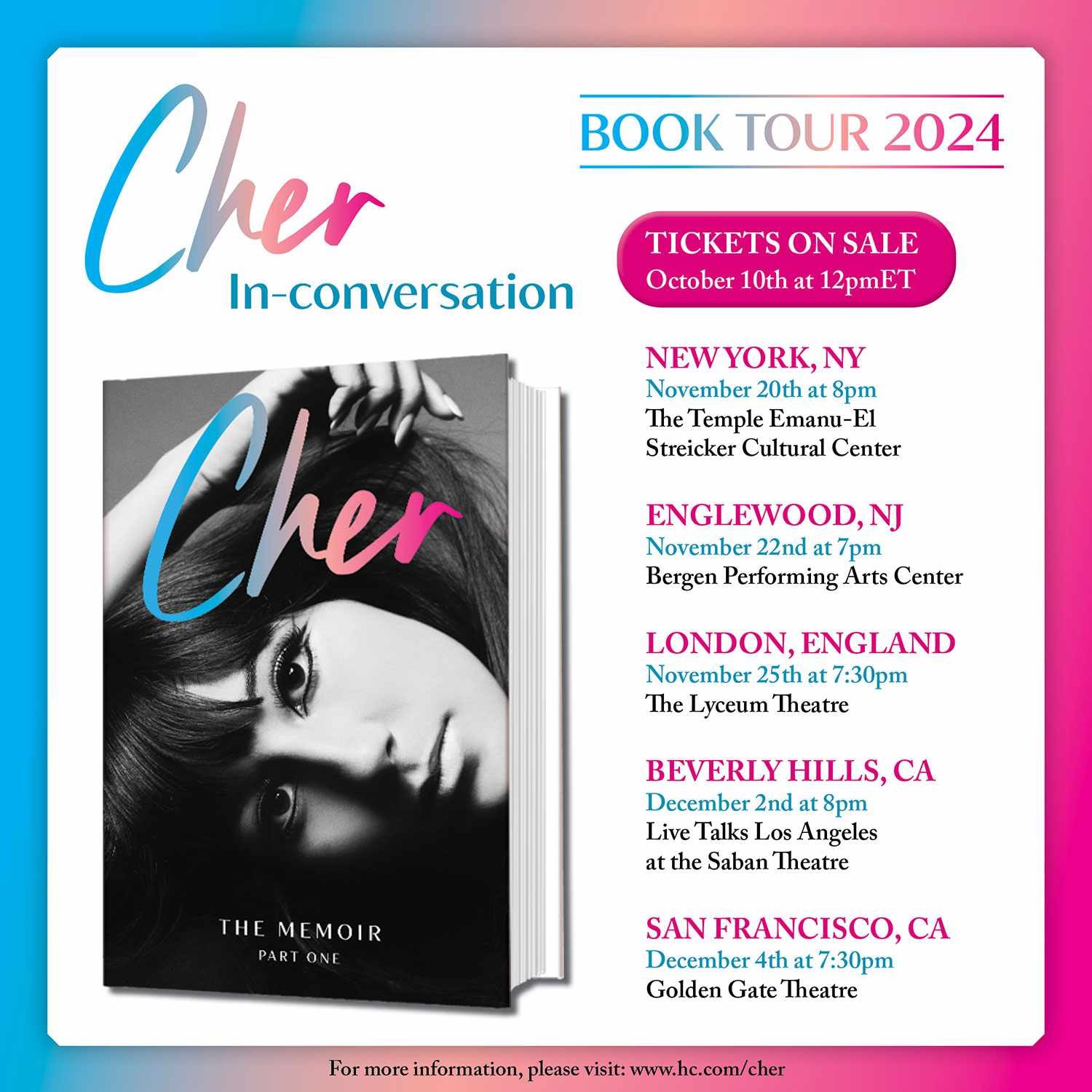 Cher’s Book Tour Dates: