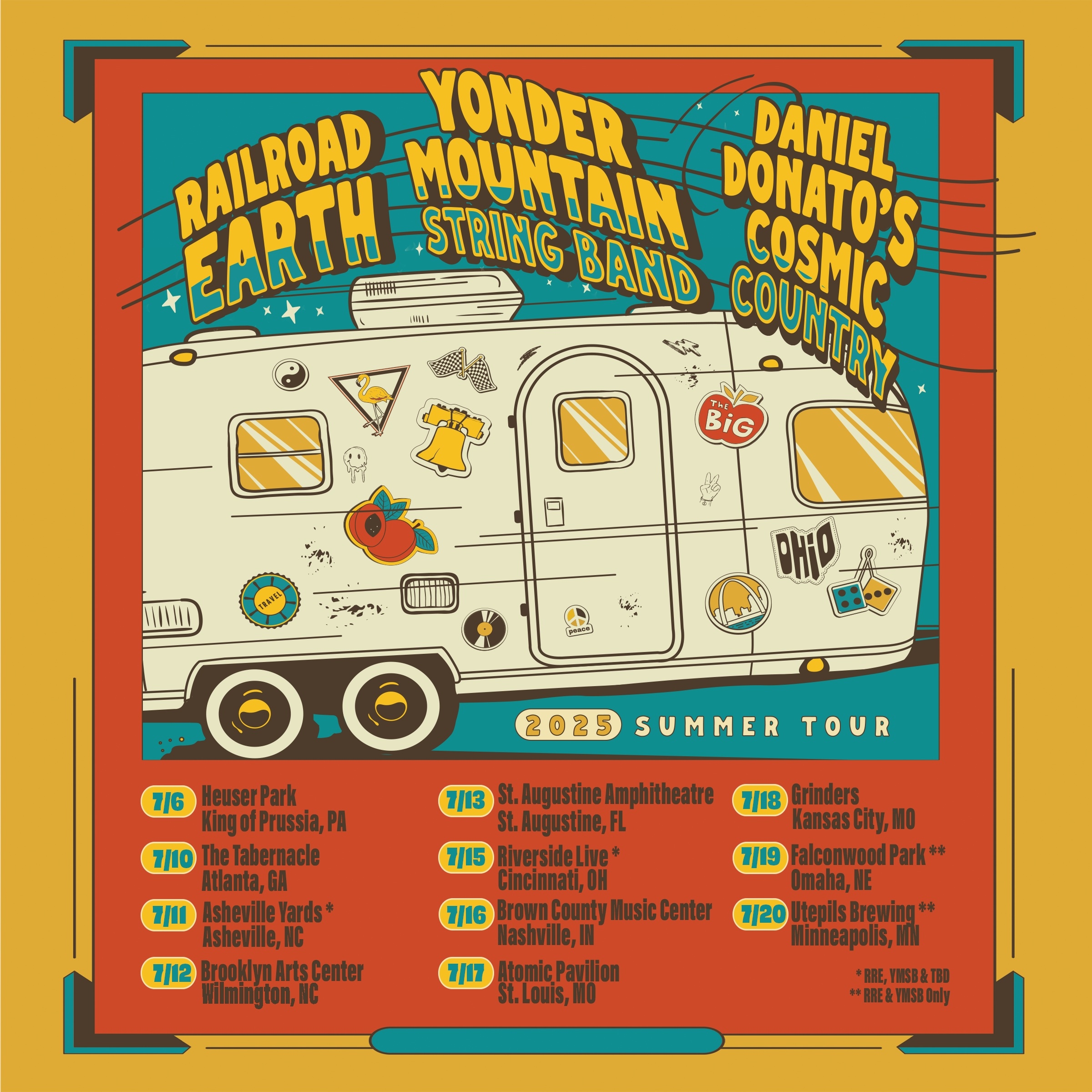 “We can’t wait to set out on the road with our friends Yonder Mountain String Band & Daniel Donato in July,” shared Carey Harmon of Railroad Earth. “These are the moments (we and) our fans live for, so to be able to get out and do this run is a dream come true.”