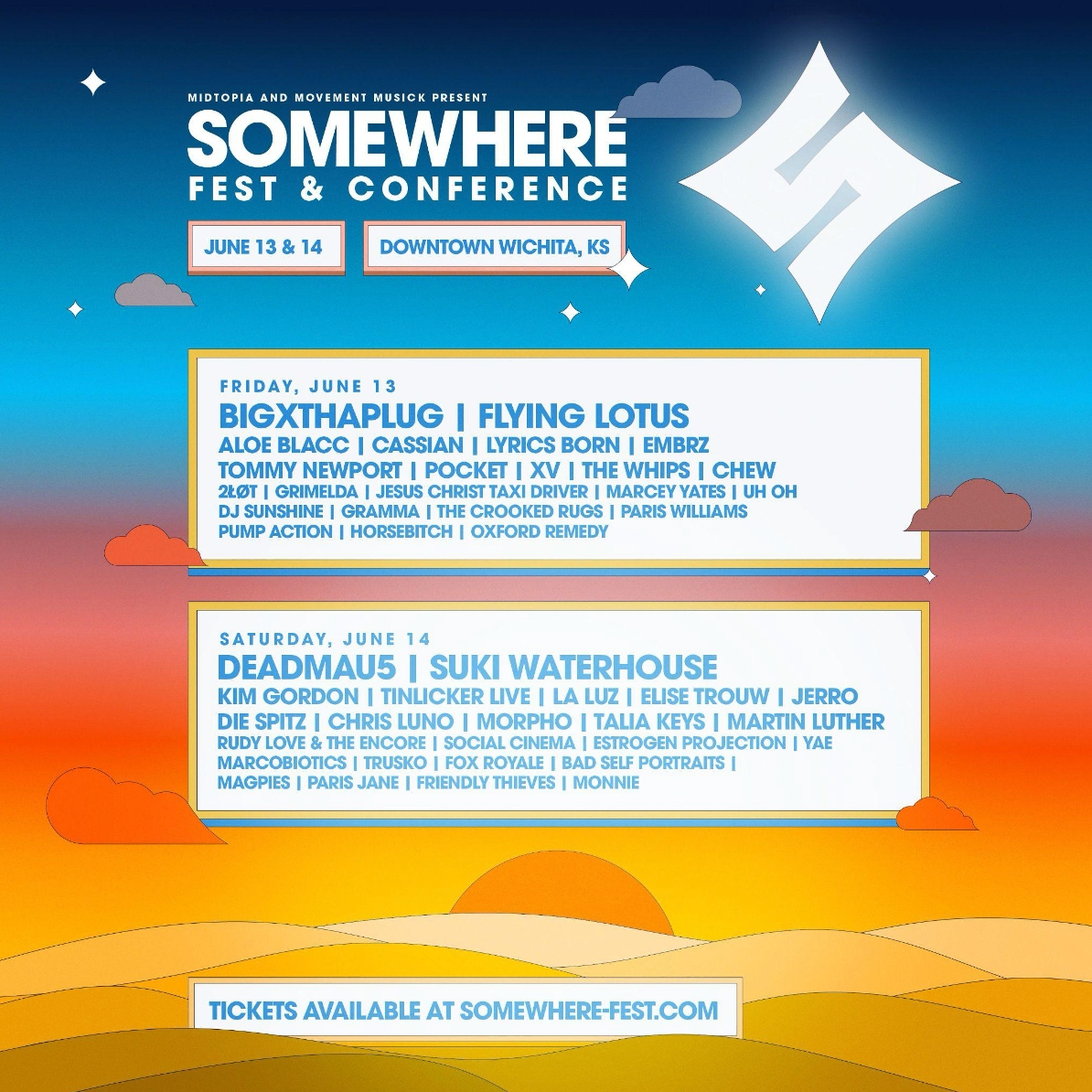 Somewhere Festival is about using music as a platform for creativity, exploration, and positive change,” said Jessie Hartke, CEO and Director of Midtopia. “Last year proved that this vision resonates, and this year we’re going even bigger—offering more opportunities for connection, artistic discovery, and real impact in Wichita.”