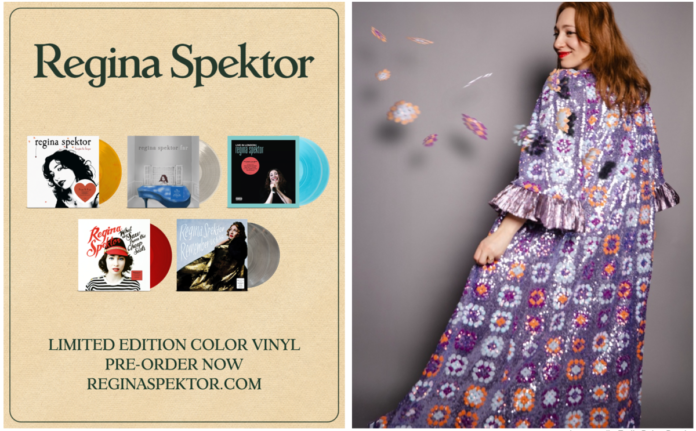 Regina Spektor will reissue five of her acclaimed albums on limited edition color vinyl: Begin To Hope (Yellow Flame LP), Far (Velum Clear LP), What We Saw From The Cheap Seats (Translucent Red LP), Remember Us To Life (Black Clouds 2LP), and Live in London (Curacao 2LP).