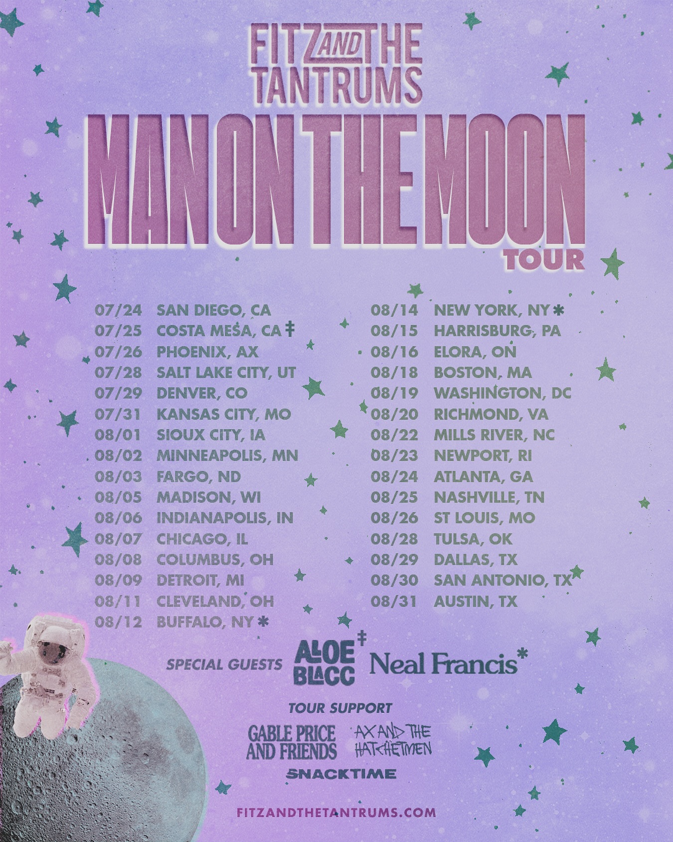 Fitz and The Tantrums have also announced a massive 31-city summer headline tour. The Man On The Moon Tour will kick off on July 24 in San Diego, CA, visit major markets across North America, and wrap on August 31 in Austin, TX. Aloe Blacc and Neal Francis will appear as special guests on select dates. Ax and the Hatchetman, SNACKTIME, and Gable Price and Friends will provide support. The tour’s complete itinerary can be found below. Citi is the official card of the Man On The Moon Tour. Citi cardmembers will have access to presale tickets beginning Wednesday, April 2 at 10:00am local time through the Citi Entertainment program.
