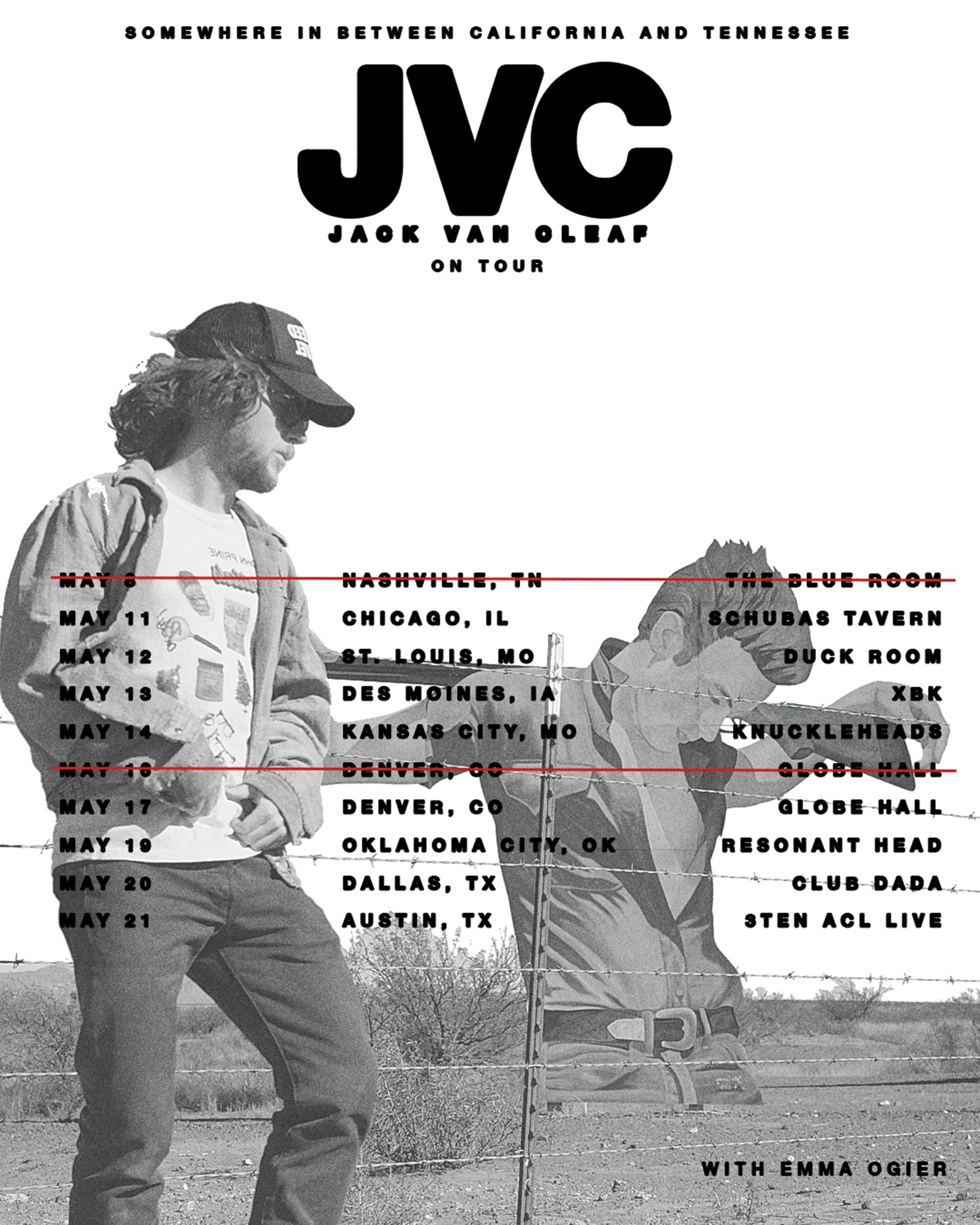 Jack performed to a sold out crowd at Nashville’s Blue Room last night and his forthcoming tour dates will see him perform in cities including: Chicago, Austin, and more. With support by special guests Ethansroom and Emma Ogier. Tickets are on sale now. For more info, visit https://www.jackvancleaf.com/#tour.