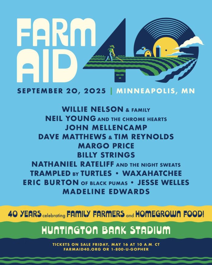 Farm Aid is heading to Minnesota for the first time for its 40th anniversary festival on Saturday, Sept. 20, at Huntington Bank Stadium in Minneapolis. The event will launch a year-long celebration of four decades of impactful advocacy, historic cultural moments and unforgettable music.