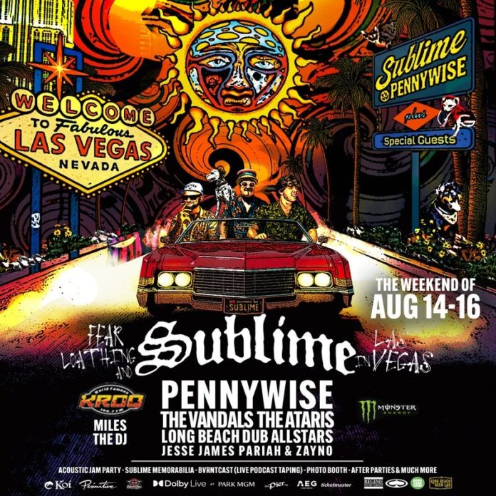 Legendary band Sublime is set to take over Las Vegas with ‘Fear, Loathing, and Sublime in Las Vegas’ at Park MGM August 14-16. The three-day celebration of music includes two electrifying shows at Dolby Live Friday, Aug. 15 and Saturday, Aug. 16 and a welcome party Thursday, Aug. 14 to kick things off, DJ’d by KROQ’s Miles the DJ with appearances from members of Sublime. Throughout the immersive weekend experience, Sublime will be joined on stage by iconic punk and alternative rock acts including Pennywise, The Vandals, The Ataris, Long Beach Dub Allstars, and SVNBVRNT Records artists Jesse James Pariah & Zayno, plus exclusive VIP experiences, acoustic sessions, and rare memorabilia on display.