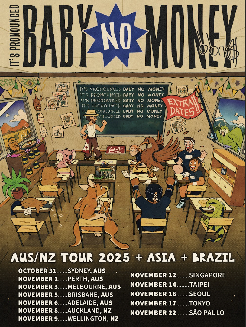 Global streaming sensation bbno$ announces the electrifying third leg of his world tour, It’s Pronounced Baby No Money, with newly added dates across Australia, New Zealand, Asia, and Brazil. Kicking off October 31 and running through November 22, the tour brings bbno$’s explosive live show to even more fans worldwide following his completely sold-out North American run.