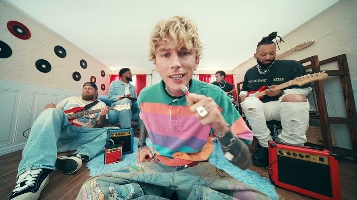 Multi-platinum recording artist mgk, returns with his new single and video “miss sunshine.” The single is a road trip-ready summer anthem that seamlessly blends the soulful sounds of southern rock and modern pop. “miss sunshine” adds another tile to mgk’s lost americana mosaic. The Sam Cahill directed video, showcases mgk and his band as giants in a meticulously crafted miniature world, which perfectly complements the song’s carefree, psychedelic-tinged vibe.