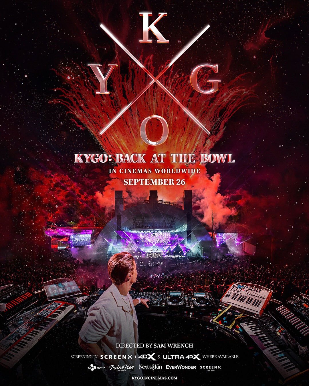 KYGO: BACK AT THE BOWL will debut at cinemas worldwide in all formats including PLF, 4DX, SCREENX and 2D screens. SCREENX enhances the traditional movie-going experience by seamlessly extending the screens onto the auditorium’s surrounding walls on the left and right sides. This premium 270-degree panoramic display amplifies visuals and fully immerses audiences in a one-of-a-kind cinematic experience making viewers feel like they are right there in the crowd. 4DX incorporates more than 21 different environmental effects, such as motion, vibration, water, wind, lightning, and scents, perfectly synchronized with the music and on-screen action for the ultimate concert experience.
