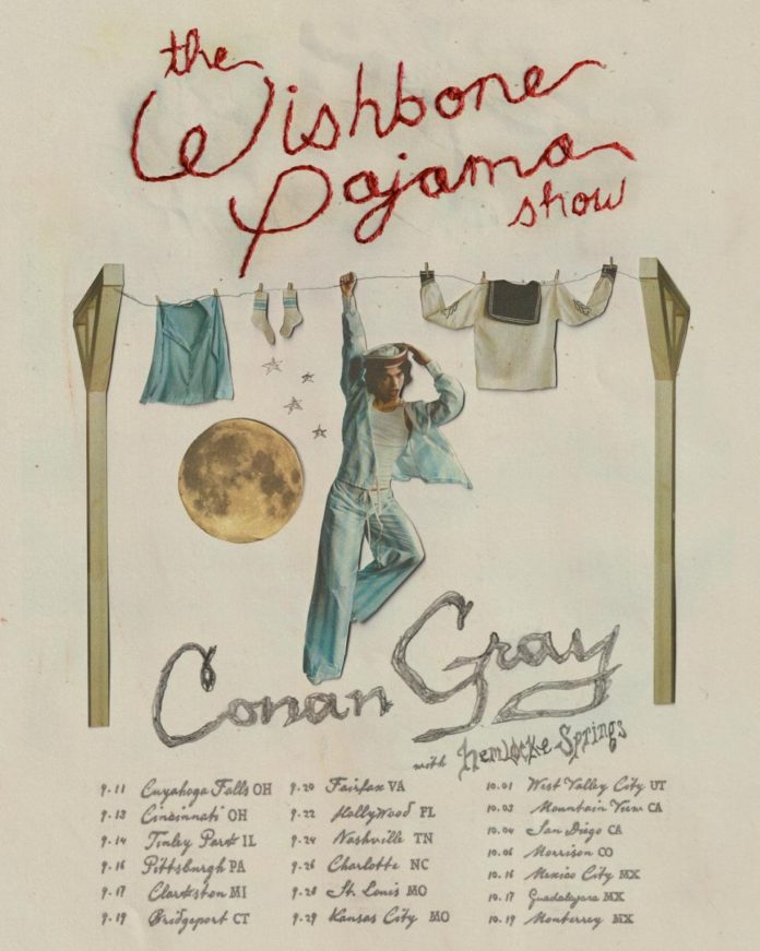 Conan Gray: The Wishbone Pajama Show with special guest hemlocke springs, will kick off on September 11 making stops across the U.S. including his first performance at the iconic Red Rocks Amphitheatre on October 6. The tour concludes with Conan’s Mexico debut (support TBA), including headlines in Mexico City, Guadalajara and Monterrey. Conan will be performing music from the anticipated forthcoming album Wishbone for the first-time on-stage, it’s a show you won’t want to miss!