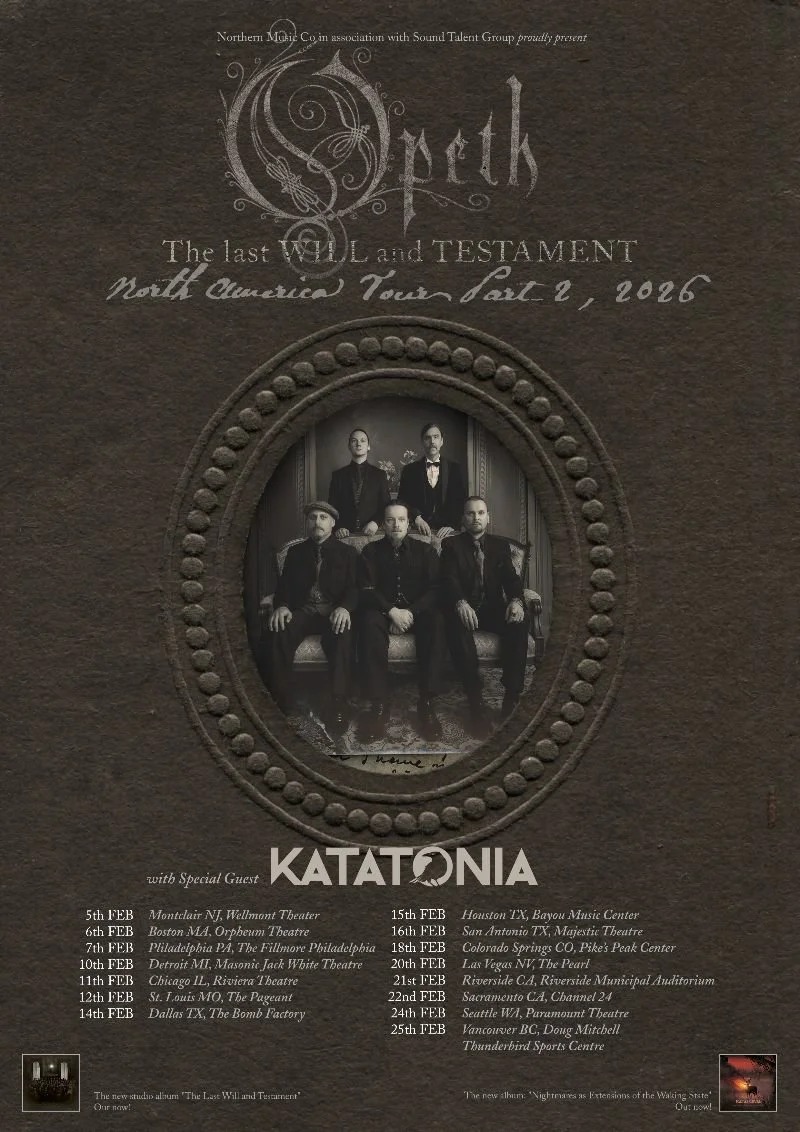 Opeth are preparing to return across the Atlantic to bring their fearless 14th studio album to stages across North America. The critically acclaimed The Last Will And Testament (released on November 22, 2024 through Moderbolaget / Reigning Phoenix Music), saw frontman Mikael Åkerfeldt return to growling vocal territory for the first time in 16 years. The Last Will And Testament North American Tour Part 2 will begin in February 2026.