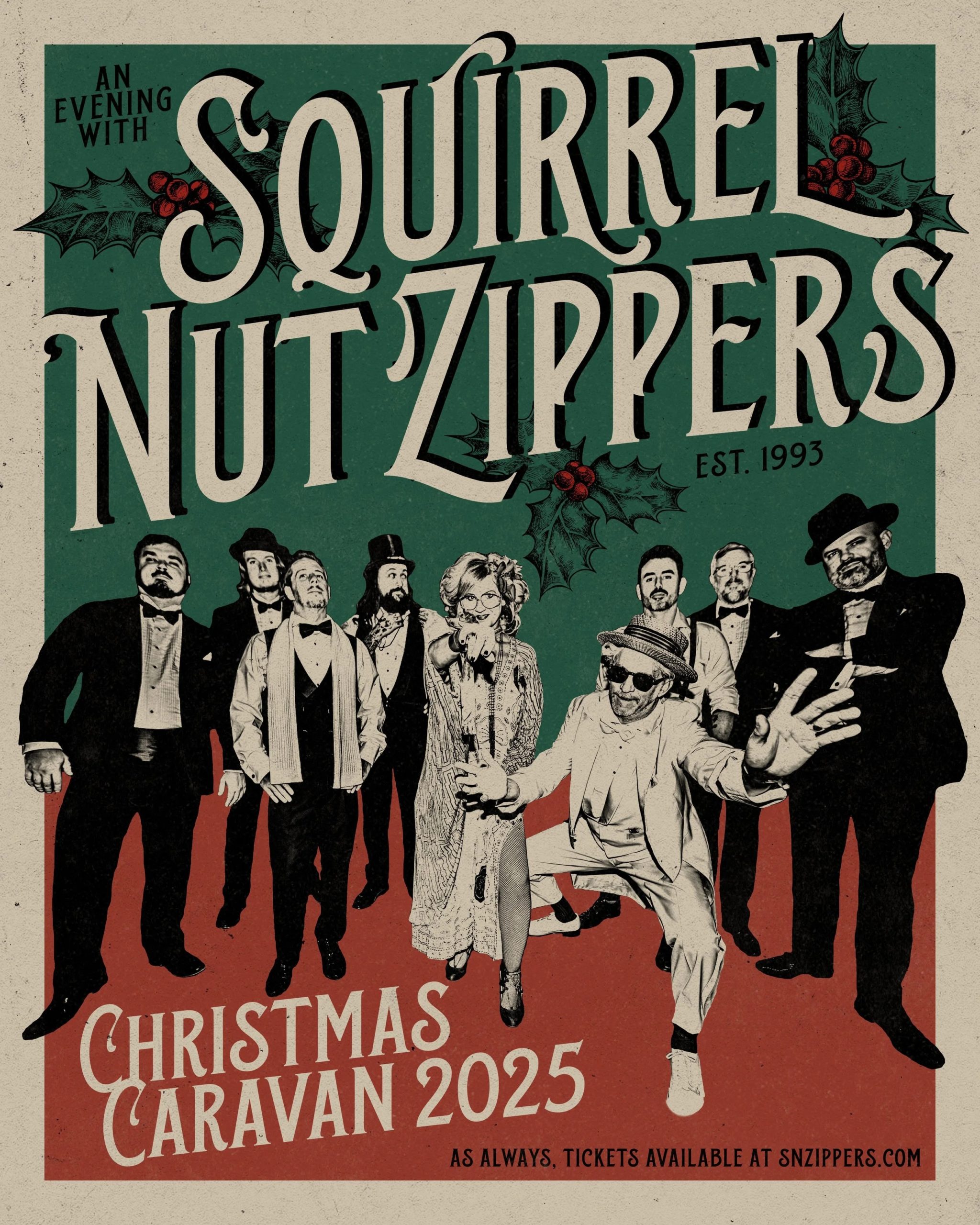 Kicking off Wednesday, December 3 at the Greenwich Odeum in East Greenwich, RI and running through Sunday, December 21at the Fox Tucson Theatre in Tucson, AZ, the 2025 “An Evening with the Squirrel Nut Zippers Christmas Caravan Tour” will hit theaters, concert halls, and historic venues nationwide, transforming each stop into a rollicking holiday revue steeped in old-time flair and infectious energy.