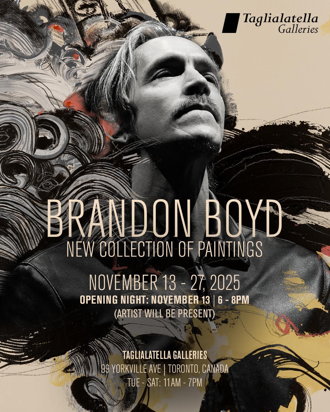 Since 2007, Boyd’s work has been exhibited in galleries across the U.S. and abroad, with his abstract paintings and fine-art prints earning praise for their emotional depth and intricate storytelling. In addition to his visual art, he has published three books combining writing, photography, and illustrations, offering fans a glimpse into his creative process. The Toronto showcase marks an exciting new chapter in Boyd’s artistic journey, bringing his distinctive vision north of the border for the first time. The opening night celebration takes place November 13 from 6–8 PM at Taglialatella Galleries Toronto, 99 Yorkville Ave., with Boyd in attendance and available for interviews earlier in the day.