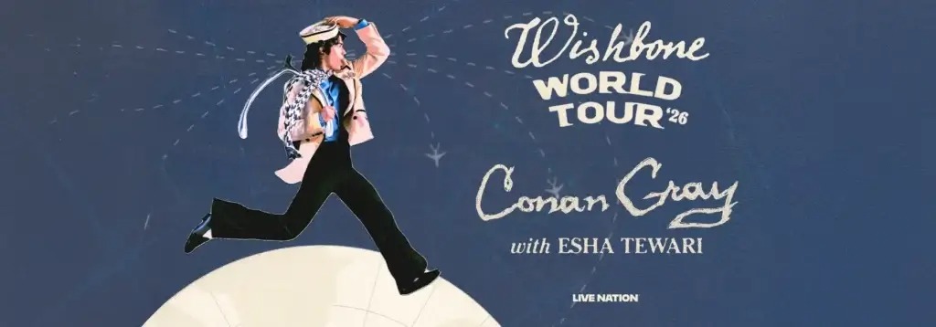 Multi-platinum singer-songwriter Conan Gray has announced his highly anticipated 2026 Wishbone World Tour with special guest Esha Tewari, in support of his critically acclaimed fourth studio album Wishbone (Republic Records). The 42-city global run kicks off February 19 at Target Center in Minneapolis, bringing Conan’s next era to life across North America, Europe, the UK, Australia, and New Zealand.