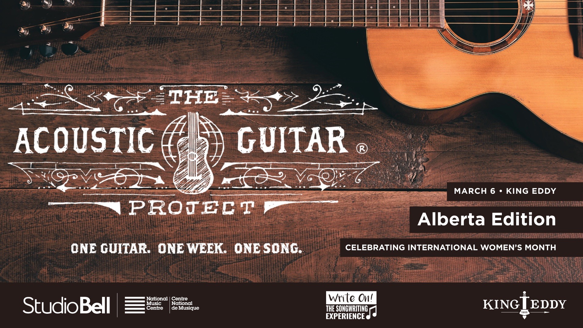 NMC & WriteOn! Present: The Acoustic Guitar Project Showcase takes place at the King Eddy on Friday, March 6. Tickets are available at studiobell.ca/whats-on. NMC Members get discounted admission. To become an NMC Member, visit studiobell.ca/become-a-member