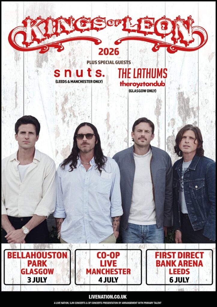 Kings of Leon return to the United Kingdom for a series of major performances scheduled for the summer of 2026. The world-renowned alternative rock group will perform at Bellahouston Park in Glasgow on July 3, followed by a night at Manchester’s Co-op Live on July 4. The run concludes on July 6 at the First Direct Bank Arena in Leeds. These dates follow the band’s history of headlining prestigious global festivals such as Coachella and Glastonbury.