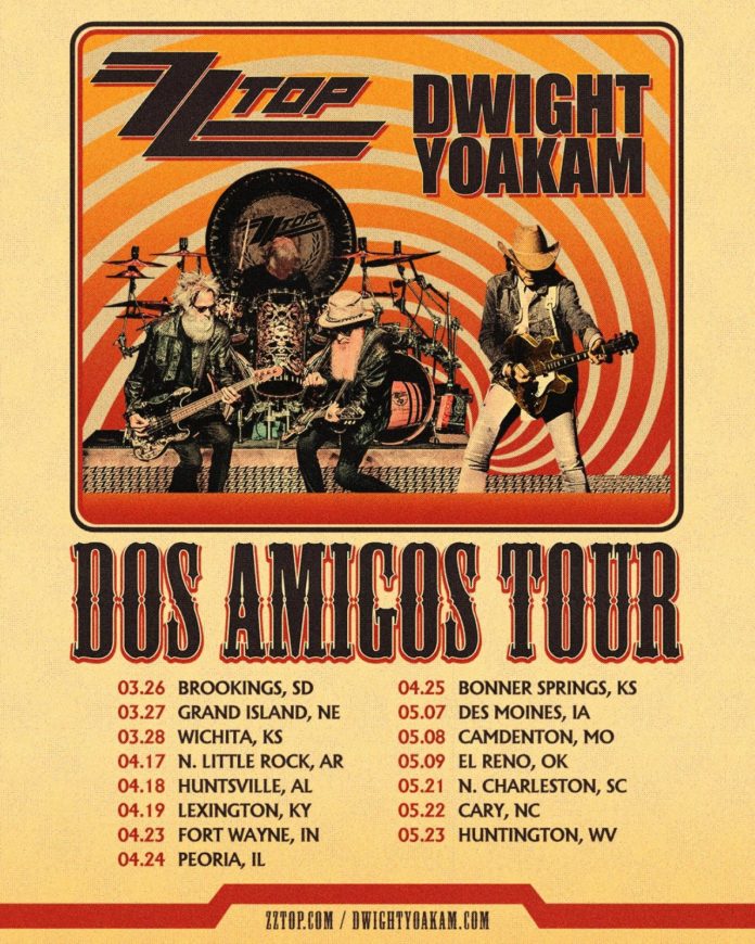 Two titans of American music, ZZ Top and Dwight Yoakam, are joining forces for an unforgettable co-headlining run, the Dos Amigos Tour, set to rock stages across the Midwest, South and East Coast in the spring of 2026. The highly anticipated tour brings together the iconic Texas blues rock of ZZ Top with the distinctive, Bakersfield sound country of Dwight Yoakam for a powerhouse evening of classic hits and electrifying performances. The tour is scheduled to officially kick off in late March 2026 and run through Memorial Day weekend. Presales are available now, ahead of the general sale on Friday, November 21st at 10 am local time.