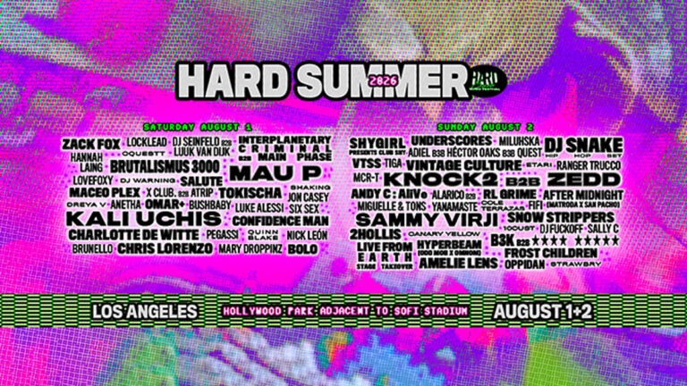 Hard Summer Music Festival returns August 1 and 2 to Hollywood Park in Inglewood, reclaiming its place as Los Angeles’ largest electronic music event. Set across the 300-acre entertainment complex adjacent to SoFi Stadium and YouTube Theater, the 2026 edition brings a refreshed layout and expanded Green Stage space. Two-day GA, GA+, and VIP passes go on sale February 27 at 10 am PT, with early SMS access at 9 am PT.