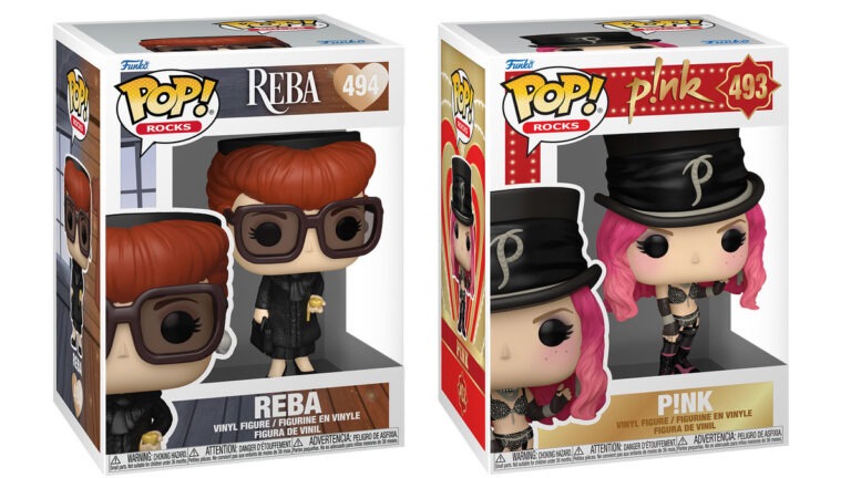 The next wave hits in February and March. Reba’s figure as Fancy Rae Baker from her 1991 “Fancy” video, draped in a mink coat and holding the gold heart locket her mother gave her, ships in early to mid February. Pink follows in early March in her show-stopping “Lady Marmalade” ensemble from the 2001 video and 2002 Grammy performance, complete with neon-pink hair and a black top hat. Tina Turner’s “What’s Love Got To Do With It” figure and Britney Spears’ “Work Bitch” Pop, which features a speech bubble reading “You better work, B!tch!,” both ship at the end of March. Metallica’s four-piece 72 Seasons set, featuring James Hetfield, Kirk Hammett, Robert Trujillo, and Lars Ulrich in their black and yellow ensembles, ships around March 9. Rob Zombie, decked in full skeleton face paint and his western goth hat, was expected to ship at the end of January.