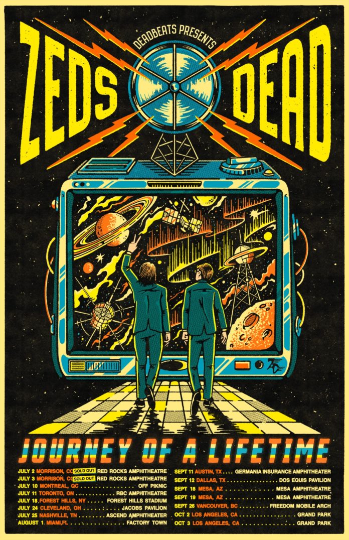 Canadian electronic duo Zeds Dead celebrate 15 years of music with the newly announced “Journey Of A Lifetime” North American tour. The run highlights the full scope of their career, from early MySpace-era releases to festival favorites and tracks from their 2025 album ‘Return To The Spectrum Of Intergalactic Happiness.’ The tour launches July 2 and 3 with their annual “Deadrocks” shows at Red Rocks Amphitheatre before moving through cities including Toronto, New York, Nashville, Miami, Los Angeles, and more.