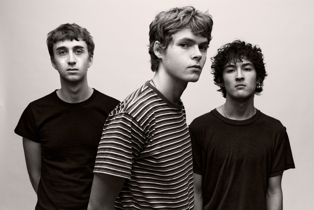 The trio of vocalist/guitarist Moses Martin, drummer Orlando Wiltshire, and bassist Andrew Suster built this sound from the ground up, literally. Wiltshire and Suster have played together since middle school jazz band, eventually moving into Wiltshire’s garage during high school before bringing Martin into the fold. That history shows in how naturally the three move together. “For Hire” was produced by the band alongside Noah Conrad, who has worked with Chappell Roan and Role Model, and the production reflects that caliber of collaboration.