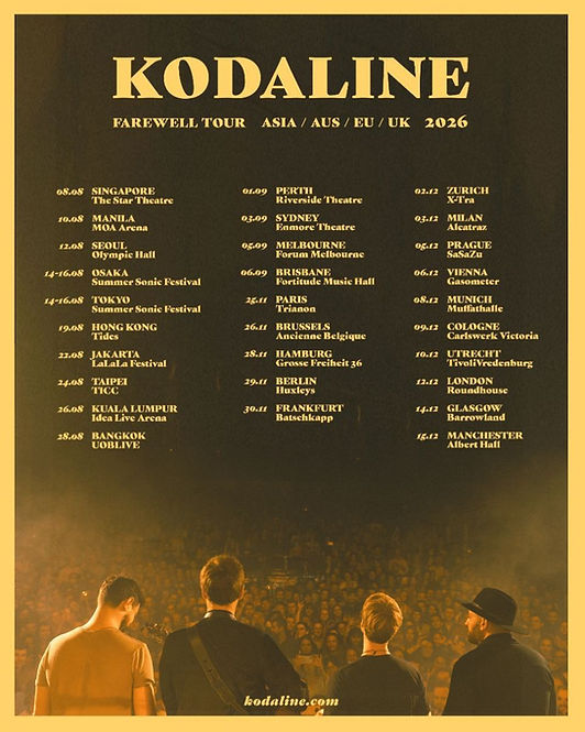 After more than a decade together, Kodaline are saying goodbye. The Irish band announces their Farewell Tour alongside news of a fifth and final studio album due later this year, with new dates confirmed across Asia, Australia, Europe, and the UK. The band addressed fans directly: “From busking on the streets of Dublin to selling out shows and arenas across the world, it really has been the stuff that dreams are made of.”