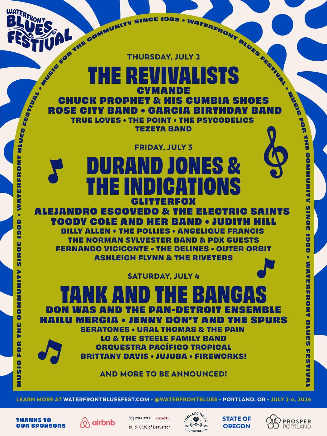 Waterfront Blues Festival is back. Portland’s longest-running downtown music event returns July 2 through 4 to Tom McCall Waterfront Park with three stages, three days, and a lineup that pulls from five continents and six decades of blues, soul, funk, Americana, and global sounds. The Revivalists, Durand Jones & The Indications, Tank and The Bangas, Cymande, Hailu Mergia, Don Was and the Pan-Detroit Ensemble, and Seratones anchor an already formidable bill, now expanded with nineteen additional artists including Tyrone Hendrix Yacht Rock Allstars, Soul Vaccination with Lloyd Jones, Bon Bon Vivant, Ruby Friedman Orchestra, and the hard-to-categorize Timmer’s Guitarmageddon pairing PNW guitar heavyweights Chad Rupp, Rafael Tranquilino, and Kevin Selfe with international shred monster Paul Gilbert.