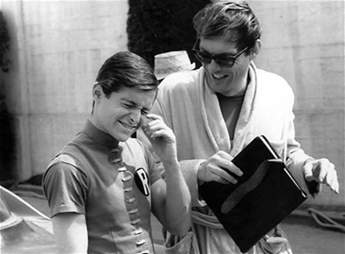 Burt Ward and Adam West on the set of the 1960’s Batman TV series.