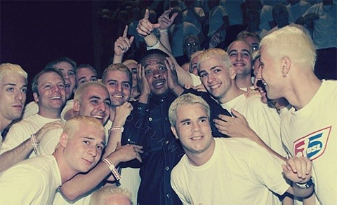 Surrounded by faux-Eminems on the set of the real Eminem’s “The Real Slim Shady” shoot